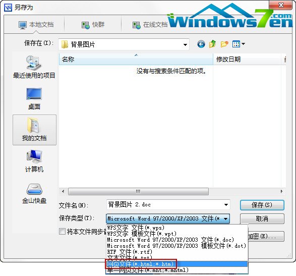 步骤二,在另存为文本框中选择文件的保存类型为网页文件(*.html;*.htm),点击保存。如图二