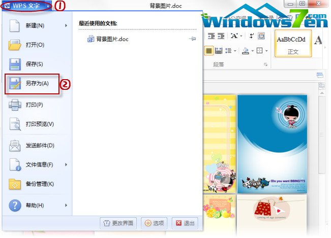 步骤一,打开文档后,点击WPS左上角的的WPS文字按钮,在弹出的下拉框中选择另存为。如图一