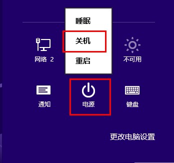 1:metro界面下使用Win8快捷键(Win+i-电源 – 关机)