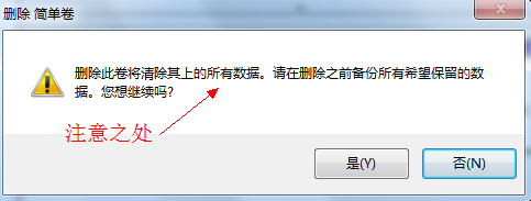 温馨提示:在这里还是要提醒各位,一旦删除磁盘分区,必须要注意该磁盘是不是有重要资料,否则一旦删除,数据将不复存在,或者是将数据备份。