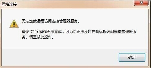 网友提问:我在利用win7系统进行创建宽带拨号连接的时候出现错误,系统出现提示内容为:错误 711:无法加载“远程访问服务连接管理器”。出现这样的问题怎么办呢?