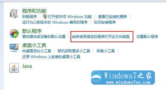 2、在弹出的对话框中点击默认程序中的始终使用指定的程序打开此文件类型。