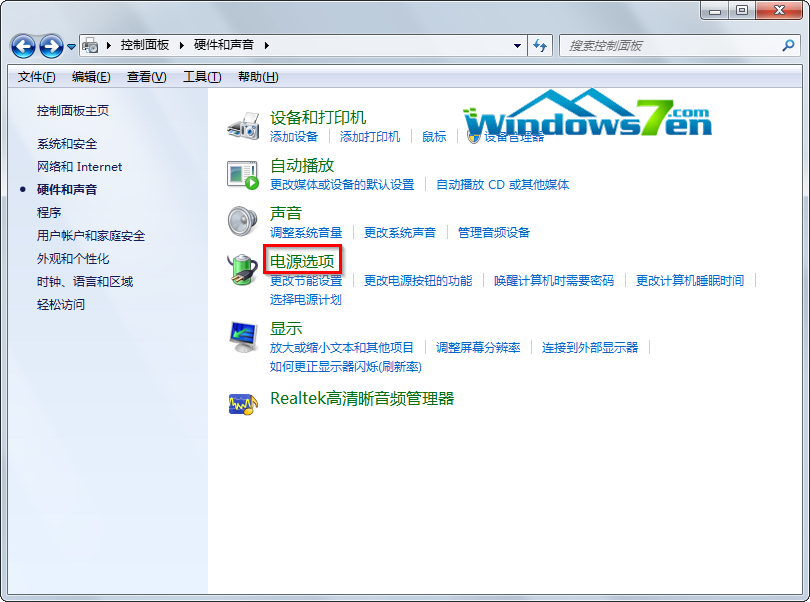 3、接着点击右侧窗口中的“电源选项”,如图3所示