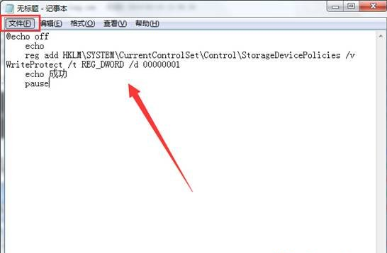 3、点击文件–另存为,将文件名改为“禁止拷贝.bat”然后保存类型选择为“所有文件”点击保存(S)进入下一步操作