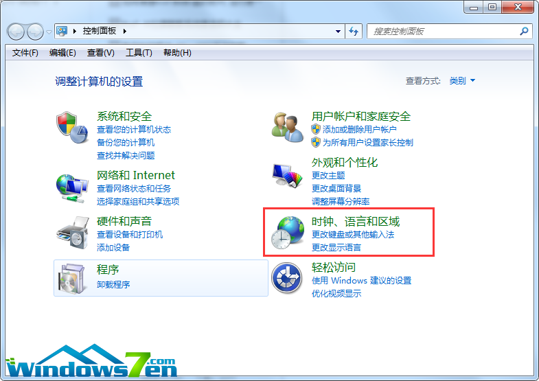 1、首先打开“控制面板”,选择‘时钟,语言和区域’(需要注意,右上角的查看方式为<类别>) ;