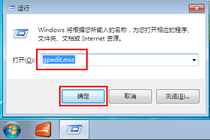 1.使用组合快捷键“win+R”打开运行并输入“gpedit.msc”,然后回车确认。