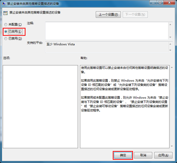 4.打开如下界面后,在左上角选择“已启用”选项,然后点击“确定”按钮保存退出即可。