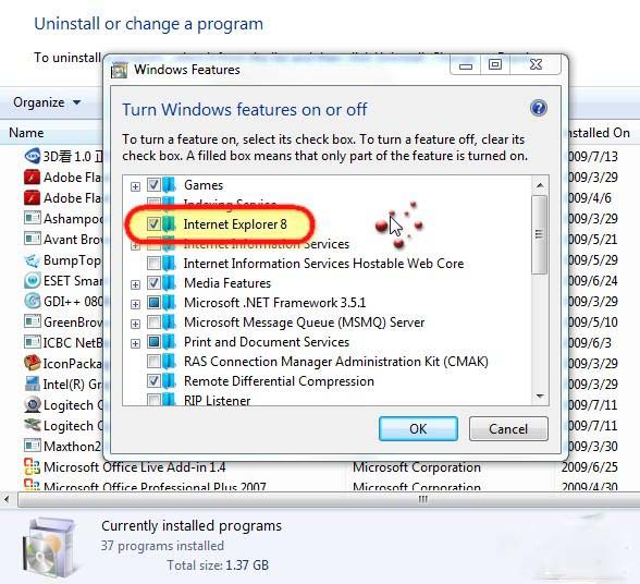 问:Windows 7中的IE8浏览器可以卸载吗?