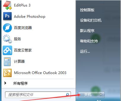 点击win7系统的开始菜单,将鼠标移动到弹出菜单上的关机选项上。