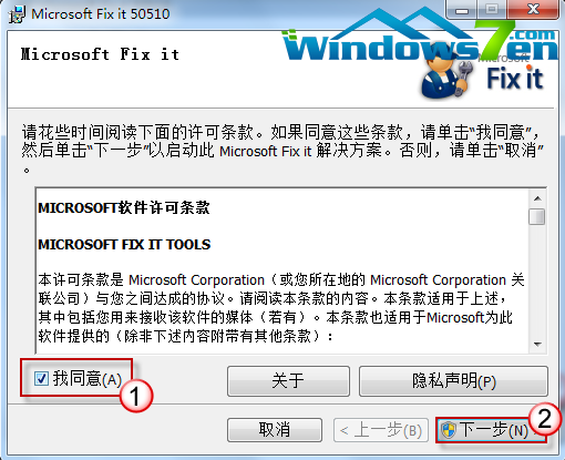 在许可条款窗口,勾选“我同意”,然后单击“下一步”。
