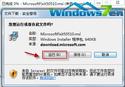 先关闭 Outlook 2010。点击“修复此问题”按钮, 弹出下载对话框后,单击“运行”。