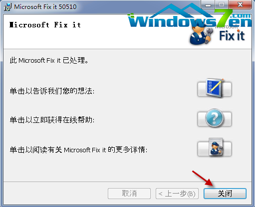 接着修复工具会自行修改相关设置,等一会修改完成后,单击“关闭”即可。
