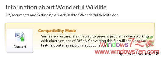 在Office 2007中微软提供了一个功能列表,用户可以通过该列表启用各种功能,不过在Office 2010中的Backstage View中,不再要求用户自己启动相关功能Office会直接显示文档的当前状况。