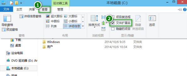1.打开桌面上的“这台电脑”(只要开启文件资源管理器都可以),在查看选项卡勾选“文件扩展名”选项显示文件后缀。