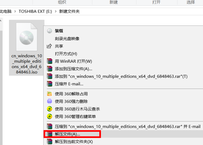 1、右击下载好的Win10 iso系统镜像文件,选择解压文件