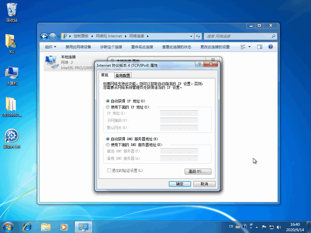 4、选择自动获得ip地址、自动获得DNS服务器地址,点击确定即可