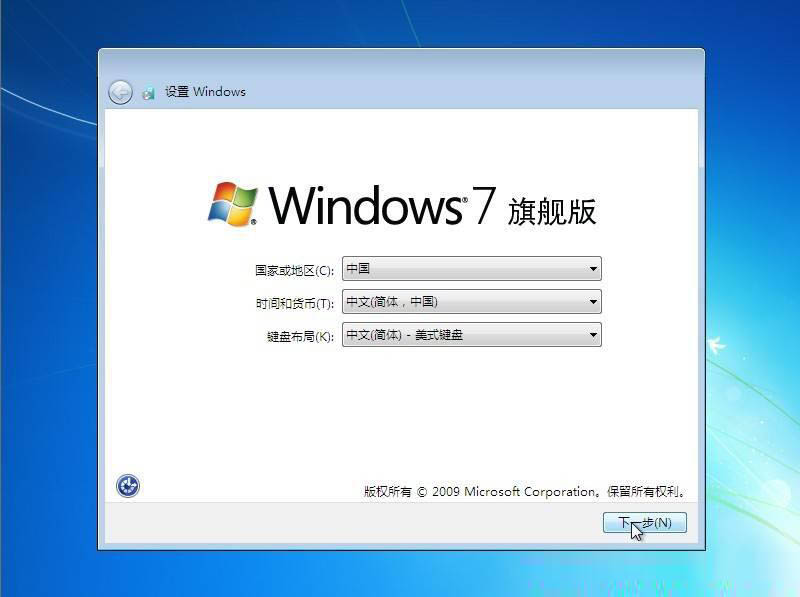 第二步、电脑重启后正式进入系统安装盘界面,选择你所使用的语言版本,当然就是我们伟大的中文啦,然后下一步。