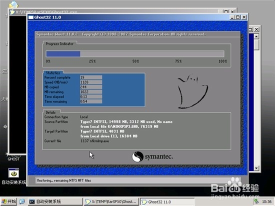 第六步,按任意键开始复制系统,复制完后系统会自动重启。