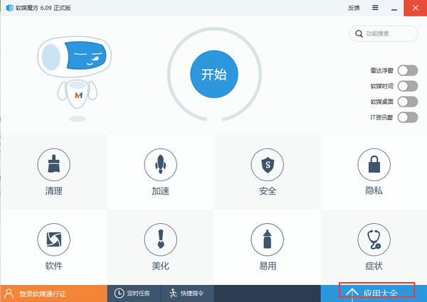 由于win7有多个版本,服务有差异,推荐使用第三方软件自动检测并恢复,例如软媒魔方,步骤如下: