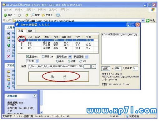 3、运行“安装系统”就会出现下面的界面,选择盘符C盘,一般就是默认就可以了,然后点“执行”
