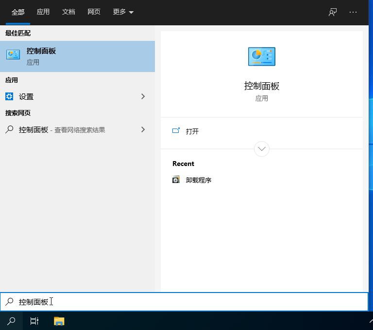 1、点击桌面左下角的“搜索”按钮,输入“控制面板”项以打开。