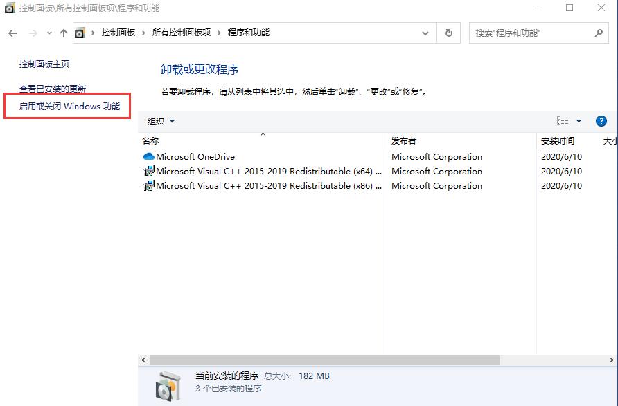 3、从打开的“程序和功能”界面中,点击左上角的“启用或关闭Windows功能”按钮。