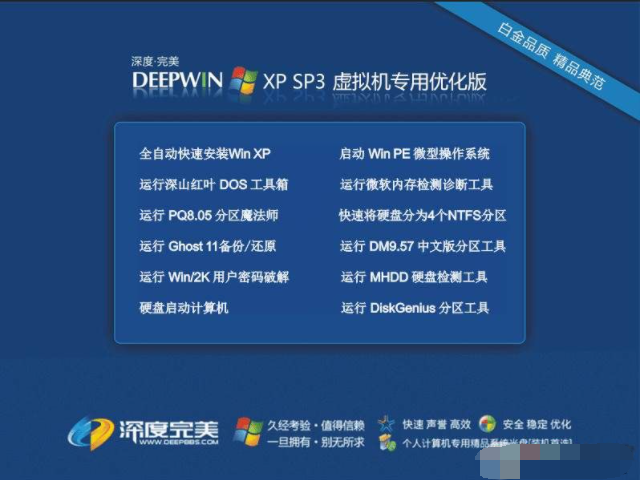 小编给大家推荐的是深度技术的虚拟机专用xp系统Ghost xp sp3虚拟机专用优化版v2020,完美在VBOX及VM上安装使用,资源占用,优化等方面都做的比较好,不过大家不要忘记安装虚拟机增强组件哦。