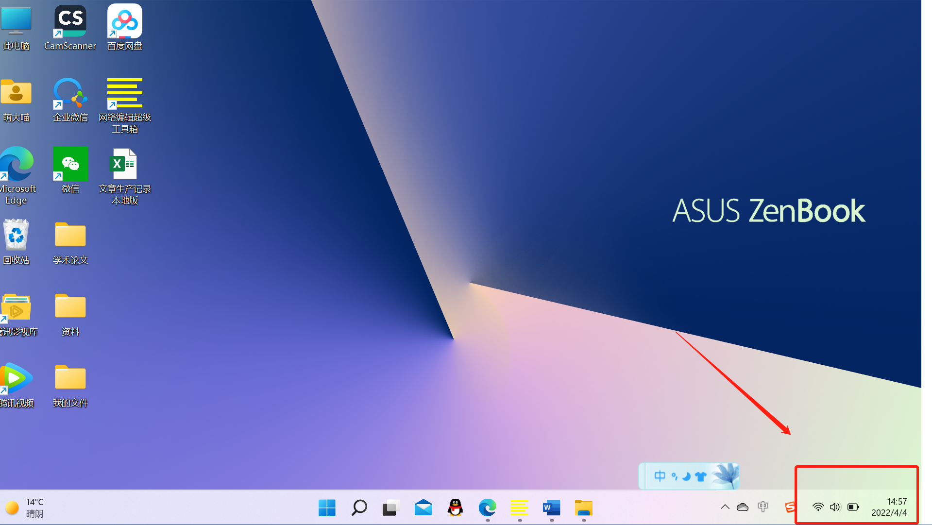1、最先,开启电脑,点一下电脑的右下方的提示框,如下图所示。