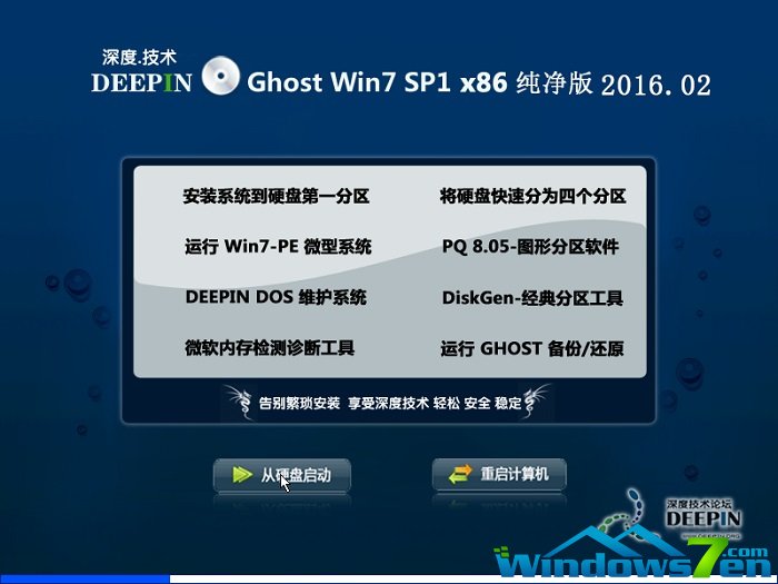 深度技术ghostwin7sp1x86纯净版v201602采用Windows7Sp132位原版制作而成,集成了最新的安全补丁和其它系统升级程序,可以通过微软正版验证,支持在线更新。