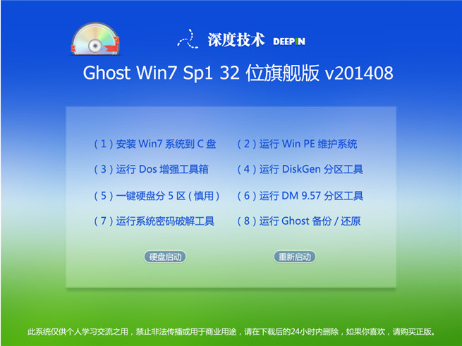 (深度技术V201409_Ghost_Win732位自动激活旗舰版)源于win732位原版基础上进行适当精简和优化的系统,集成最新,最常见的电脑系统软件与win732位系统驱动,并且系统干净无毒,按照用户使