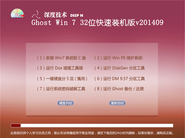 (深度技术V201409_Ghost_Win732位快速装机版)源于win732位原版基础上进行适当精简和优化的系统,集成最新,最常见的电脑系统软件与win732位系统驱动,并且系统干净无毒,按照用户使用习