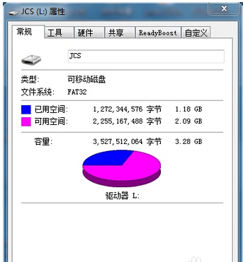 在我的电脑中右击U盘,打开U盘属性,看自己U盘的文件系统是FAT32还是NTFS。
