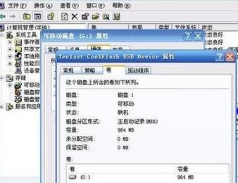 2、“磁盘管理”—“可移动 G盘”— “右键”—“属性”