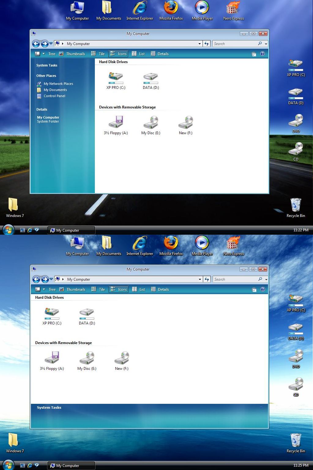 这款windows7主题有左边和下边的shell两种风格,宽屏的兄弟用起来会爽一点.