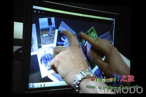 展示是在一台戴尔Latitude XT平板电脑上进行的,支持多点触摸,可以说和iPhone目前的操作方式非常类似。盖茨和鲍尔默表示,微软Surface团队参与了这一操作界面的开发,微软希望通过这样的界面彻底重新定义PC的人机界面操作方式。至少,展示中的任务栏进行了较大幅度的修改。