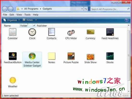 不过,在Windows7中,侧边栏已经成为桌面的一部分,只需右键单击桌面,选择“Hide Gadgets”即可隐藏侧边栏,相反地选择“Show Gadgets”即可显示侧边栏;如果需要添加侧边栏项目,只需右键单击桌面,选择“Add Gadgets”命令,这时将打开Gadgets窗口,双击需要添加的模块即可(如图2)。
