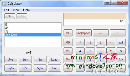 以前的计算器只有标准型和科学型两种,而Windows7的计算器则增加了程序型和统计型,这使得Windows7的计算器可以适应多种类型的用户了。比如:统计型计算器就具备了函数功能,支持Ave、Sum、SqAv、SqSu等函数,方便用户进行统计运算(如图9)。