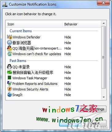 另外,计算机还具有单位换算功能,支持常见的面积、温度、角度、能量等单位,只需在Input输入原始单位的数值即可在Output处获得换算结果。而程序型计算器则非常适合做四则运算。 5.精简的系统托盘区通知区域 Vista的系统托盘区在驻留了较多的程序后会变成可伸缩面板,只有进入任务栏和开始菜单的属性窗口才能进行系统托盘区的通知区域的图标自定义,有些麻烦。在Windows7中,我们直接点击系统托盘区的箭头图标按钮即可弹出活动的图标,选择“Customize”命令即可自定义通知区域的图标了(如图11)。比如:我们可以将QQ的图标设置为Show。